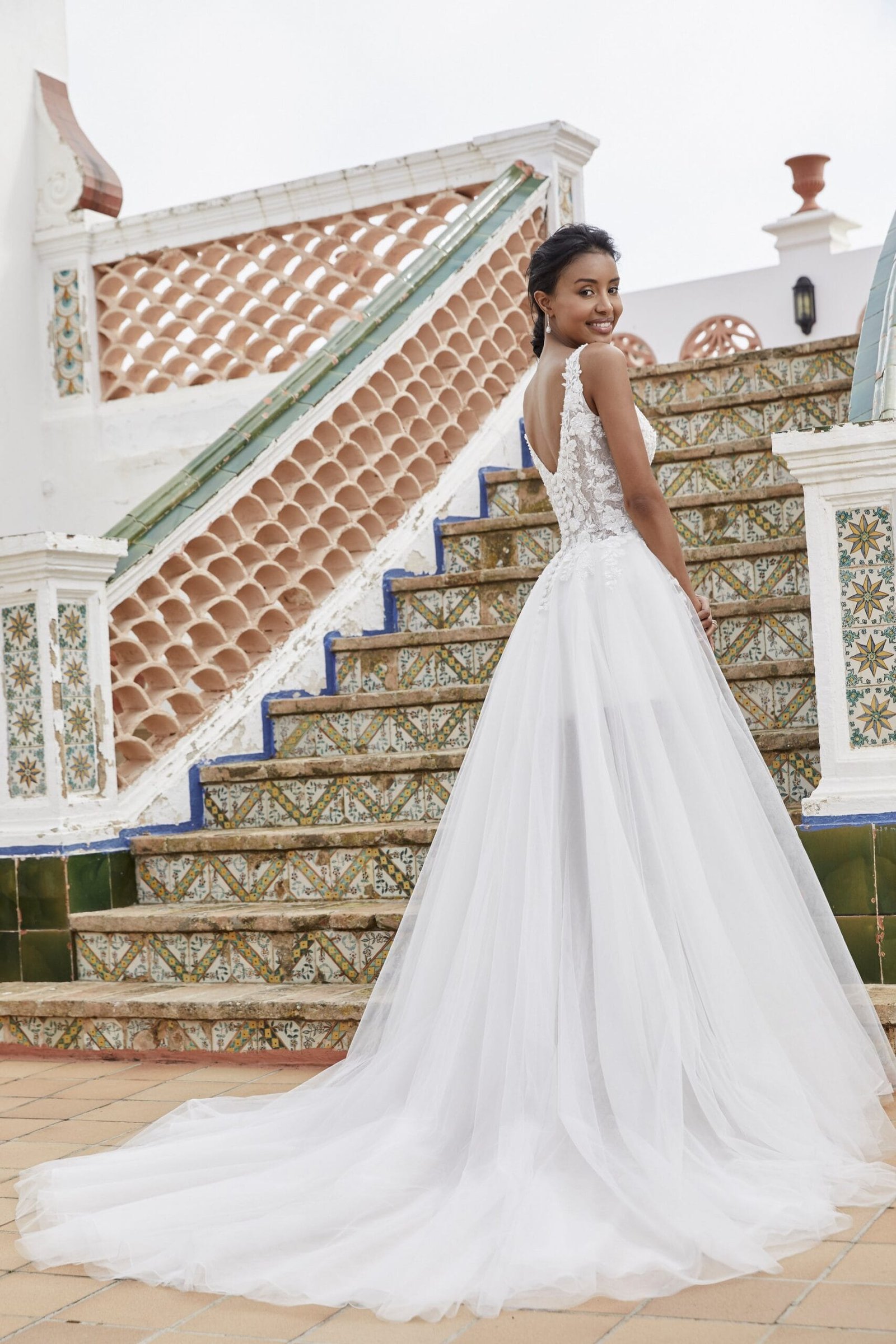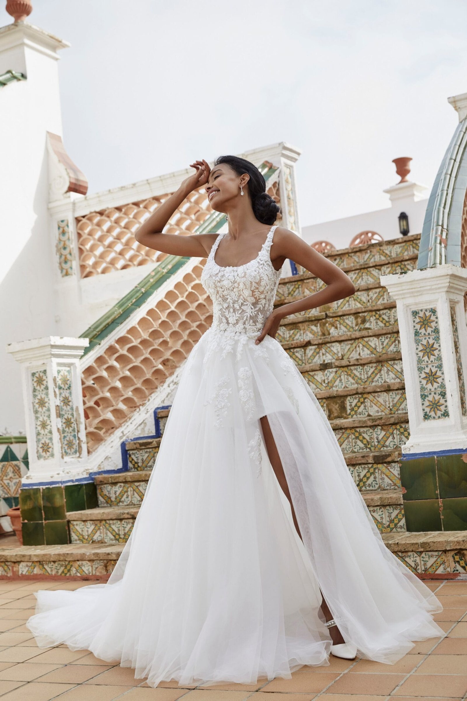 Scopri il nostro modernissimo abito da sposa con scollo tondo in pizzo ricamato e tulle. Questo abito è stato progettato per le spose che cercano un perfetto equilibrio tra eleganza e comfort. I dettagli preziosi del pizzo rendono ogni abito un …