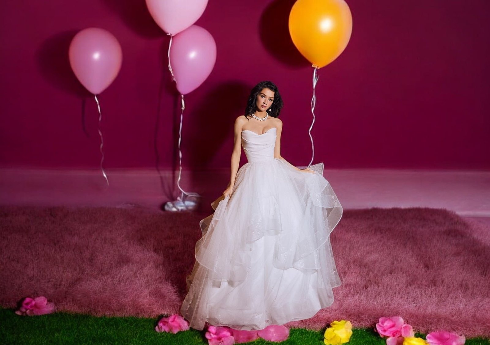 I molteplici strati a balze non solo offrono una texture interessante, ma creano anche un gioco di luci e ombre, aggiungendo profondità e dimensione alla silhouette della sposa. Questo effetto tridimensionale eleva il look tradizionale, conferendogli una nuova vitalità. Il risultato è un abito che rispetta la tradizione dell’abito da ballo, ma che allo stesso tempo abbraccia la modernità con eleganza e raffinatezza.